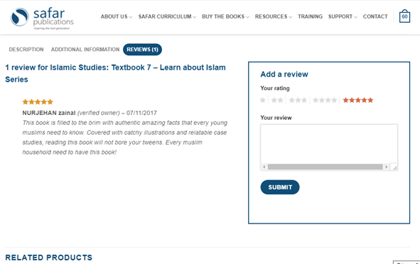 - Choose your star rating for the book, write your review and click on submit and that's it, Alhamdulillah it's as simple as that!